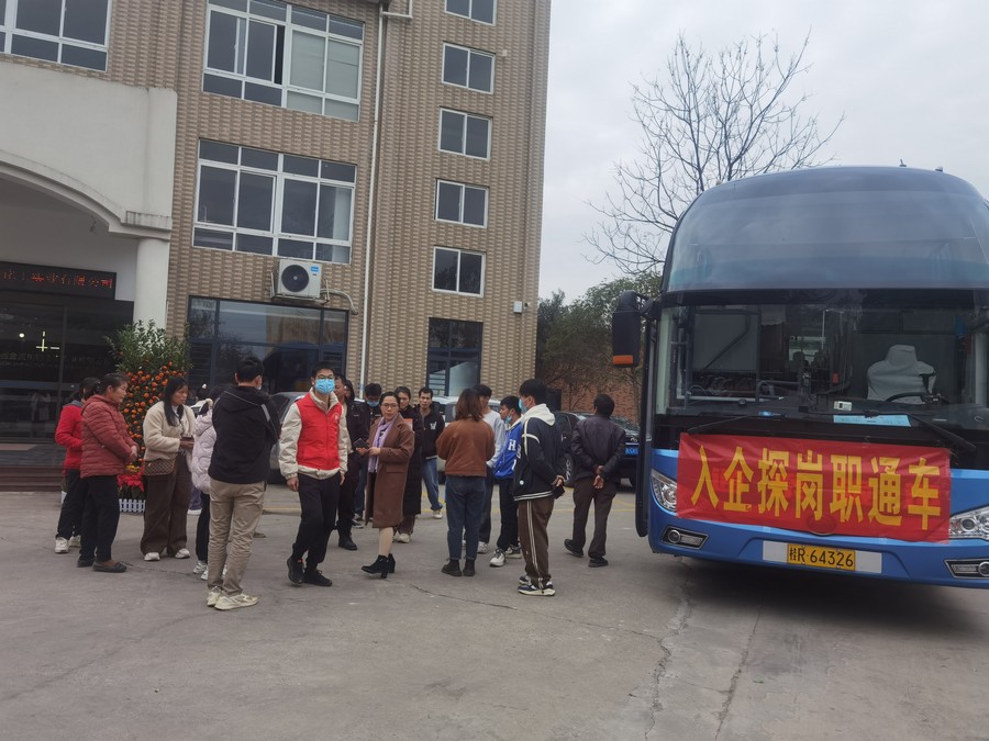日前,一輛滿載30多名求職者的入企探崗“職”通車開往廣西桂平市木樂工業園區閃鷹體育用品有限公司、紡織服裝產業園蘭力馳運動服飾公司,把求職者從“家門口”送到“廠門口”。