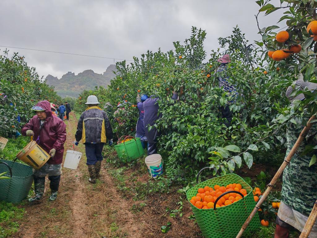 農戶在果園里采摘沃柑。新華社記者朱麗莉 攝