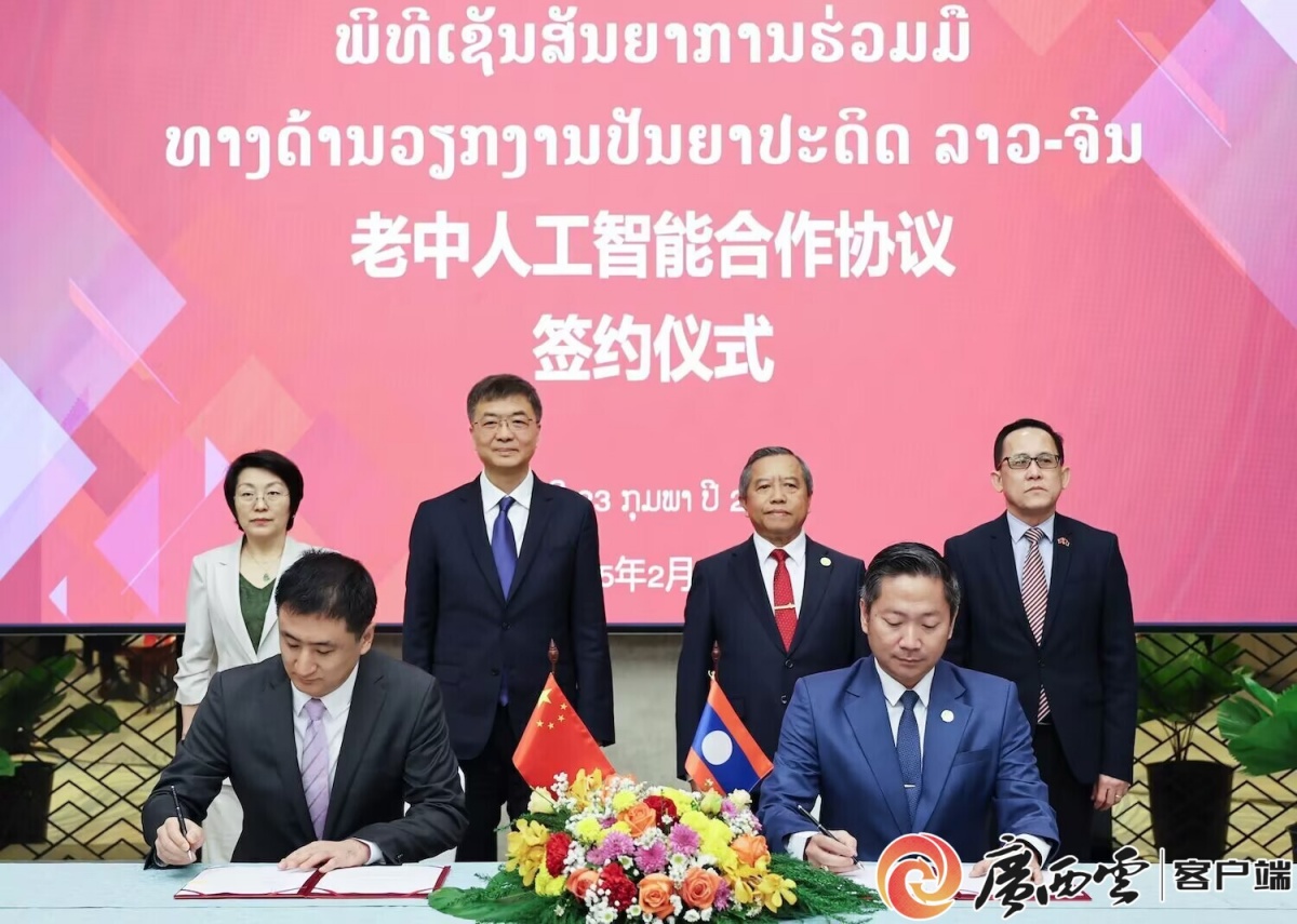 2月23日,廣西與老撾共建中國—老撾人工智能創新合作中心簽約儀式在萬象舉行,這是我國與東盟國家簽訂的首個人工智能合作創新平臺。雙方將通過共同建設中國—老撾人工智能創新合作中心,系統化提升老撾在智能時代的基礎能力,賦能老撾千行百業的發展。正率廣西代表團訪問老撾的自治區黨委書記、自治區人大常委會主任陳剛和老撾科技與通訊部部長波萬坎共同見證簽約。