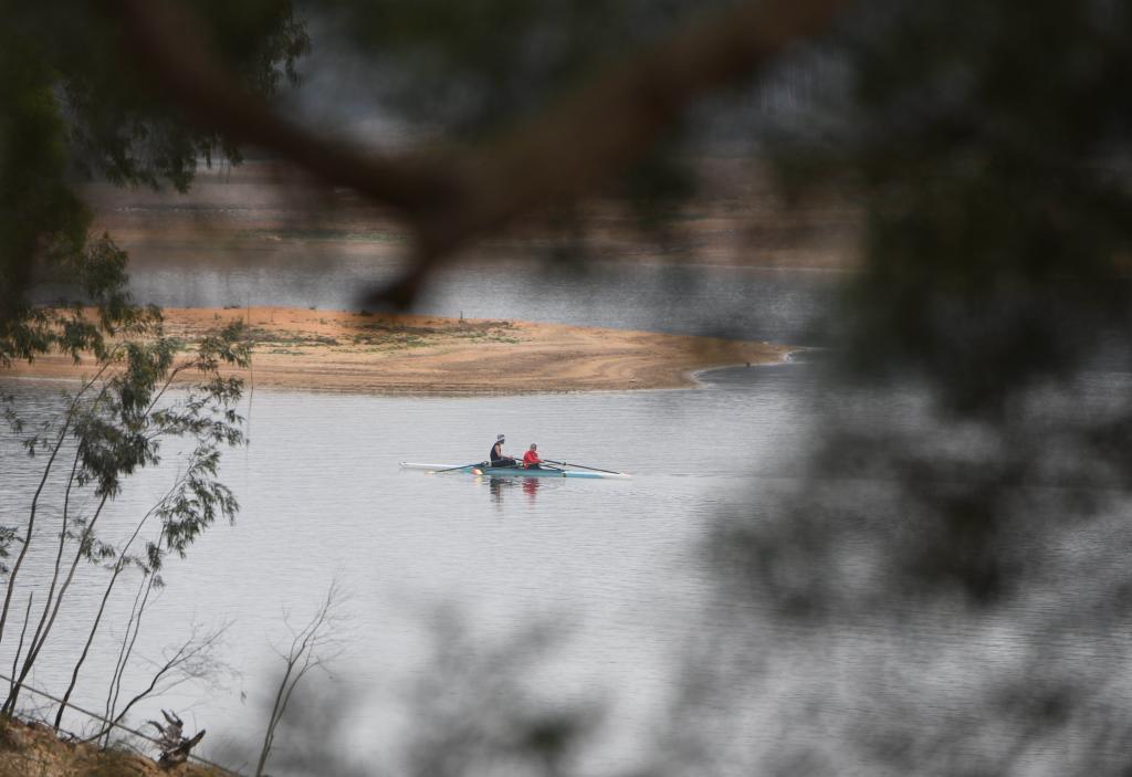 ↑2025年3月4日,廣西北海市星島湖旅游度假區,運動員競速的身影與瀲滟水色交織成躍動的“風景線”。CICPHOTO/李君光 攝