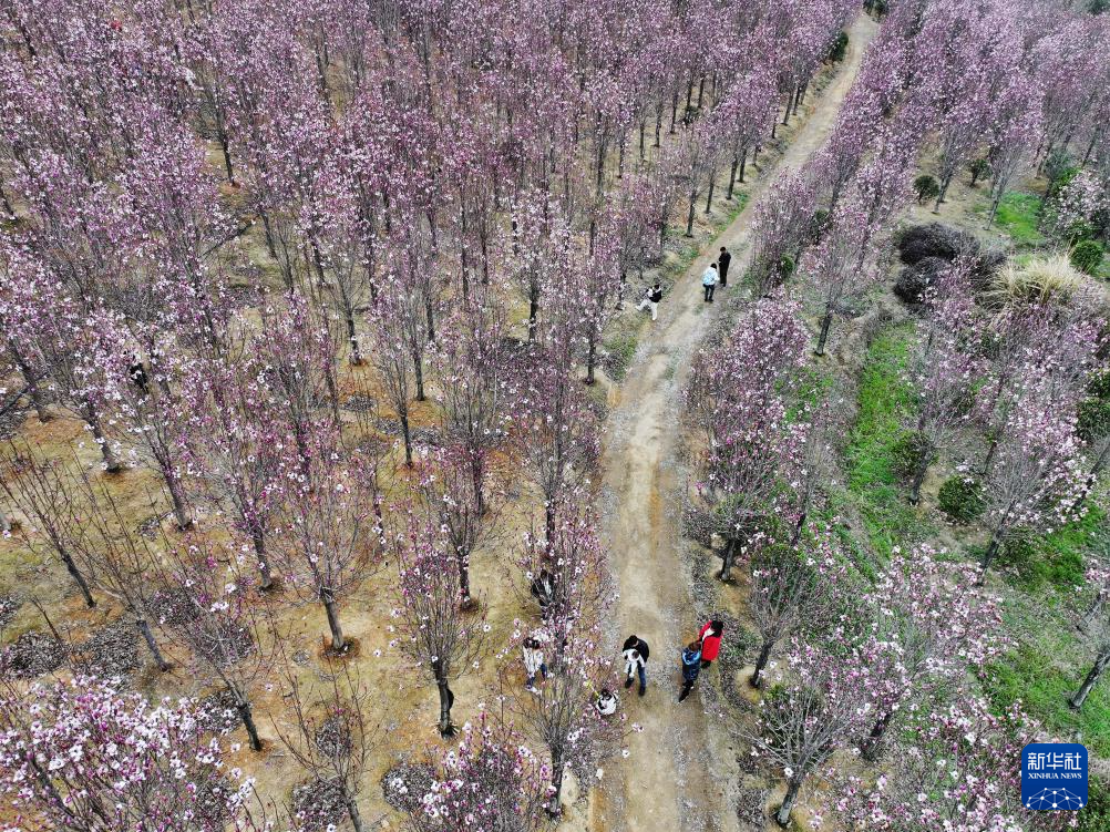 3月8日,游客在廣西恭城瑤族自治縣恭城鎮觀賞玉蘭花。