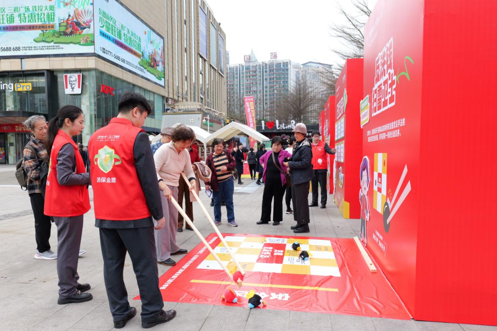 廣發銀行南寧分行“壯鄉金融教育快閃店”中的金融知識趣味快閃活動吸引民眾參與互動。