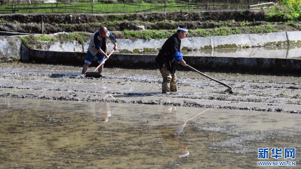 3月20日,廣西三江侗族自治縣良口鄉和里村農民在耙田。