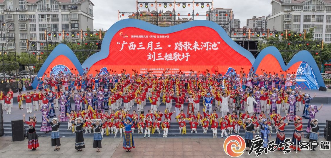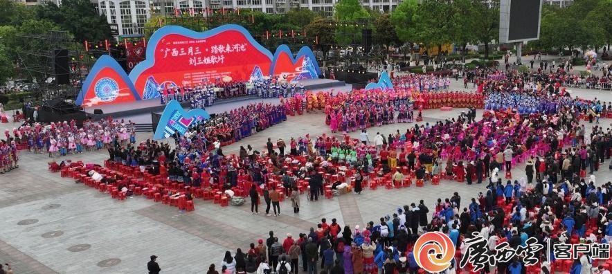 原標題:千人拉歌 萬人合唱 “廣西三月三·踏歌來河池”劉三姐歌圩盛況空前