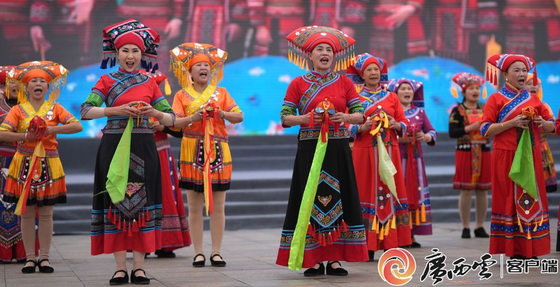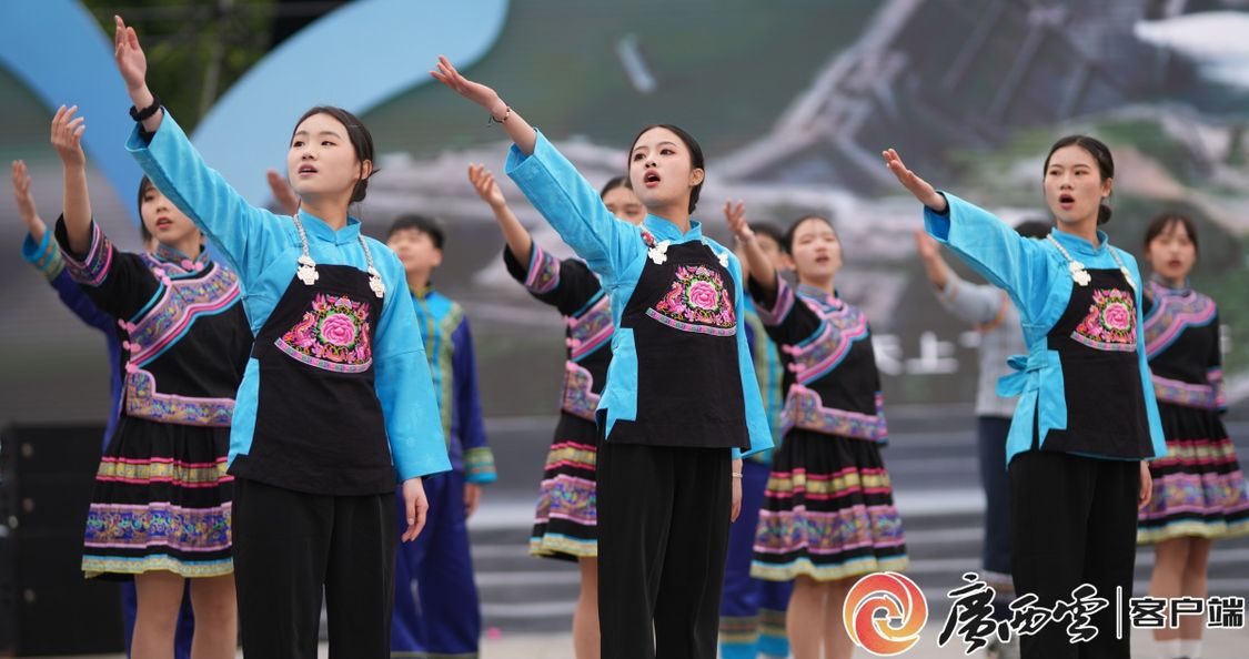 活動現場,各縣區拉歌方陣還現場盤歌《劉三姐“對歌”》《唱彩調》《盤歌》《采茶歌》《什么水面打跟斗》等劉三姐經典曲目,歌聲此起彼伏,展現出千人拉歌、萬人合唱的歌圩盛況。