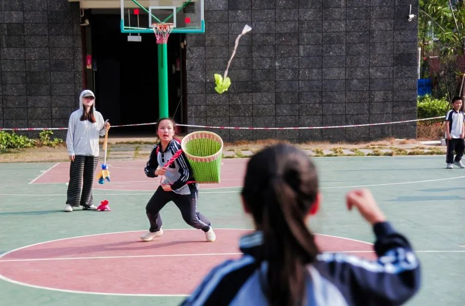 在民族傳統體育運動會上,板鞋競速、拋繡球等比賽讓同學們感受傳統體育魅力。(唐甜恬)