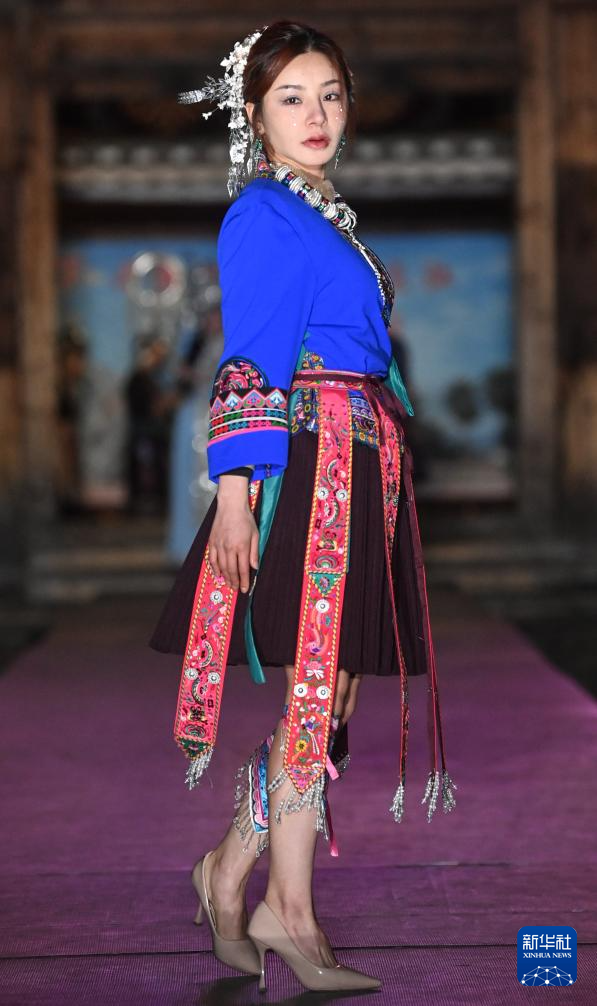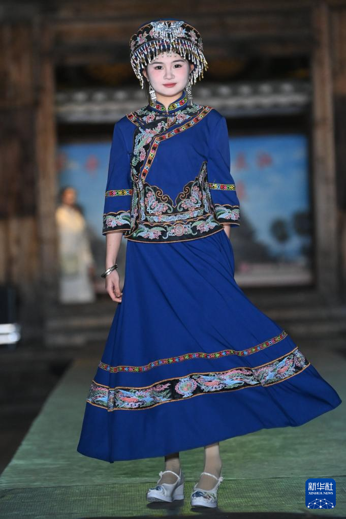 “廣西三月三·八桂嘉年華”活動期間,廣西柳州市三江侗族自治縣侗族群眾穿著民族服飾依次走上T臺,展現侗繡獨特民族風情及時尚變化,慶祝傳統佳節。