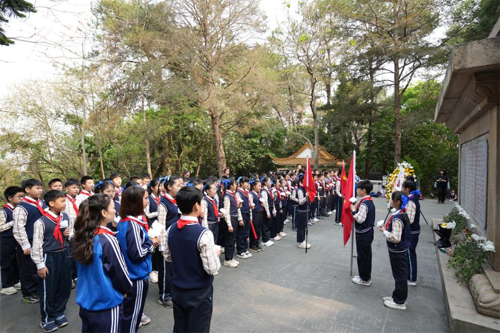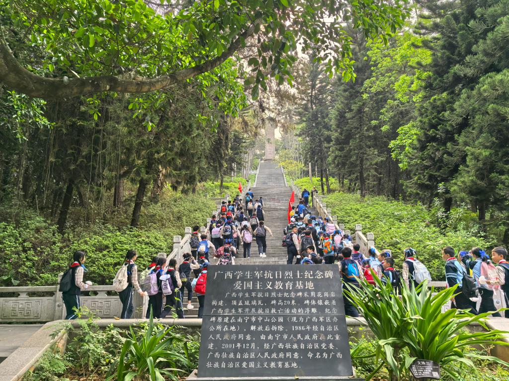 春風寄哀思,青松伴忠魂。4月3日上午,南寧市濱湖路小學教育集團濱湖校區開展清明節祭掃英烈主題活動,五(1)、五(2)中隊的少先隊員們,在老師的帶領下,身著整齊的校服,戴著鮮艷的紅領巾,前往青秀山廣西學生軍抗日烈士紀念碑,以一場莊嚴肅穆的祭掃活動,緬懷革命先烈,厚植愛國情懷。