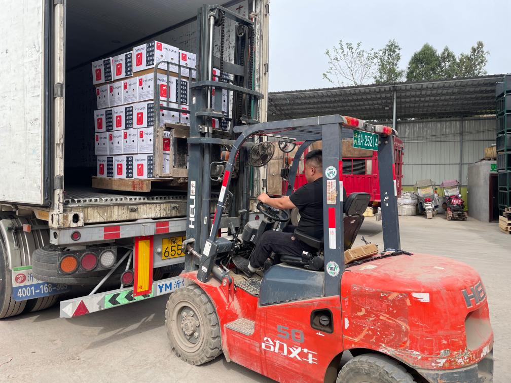 重慶磊書果品有限公司的工人將打包好的檸檬鮮果放入冷鏈班車(4月14日攝)。待檢驗檢疫合格后,這批28噸檸檬鮮果將通過陸海新通道公路班車冷鏈運輸直達越南。新華社發
