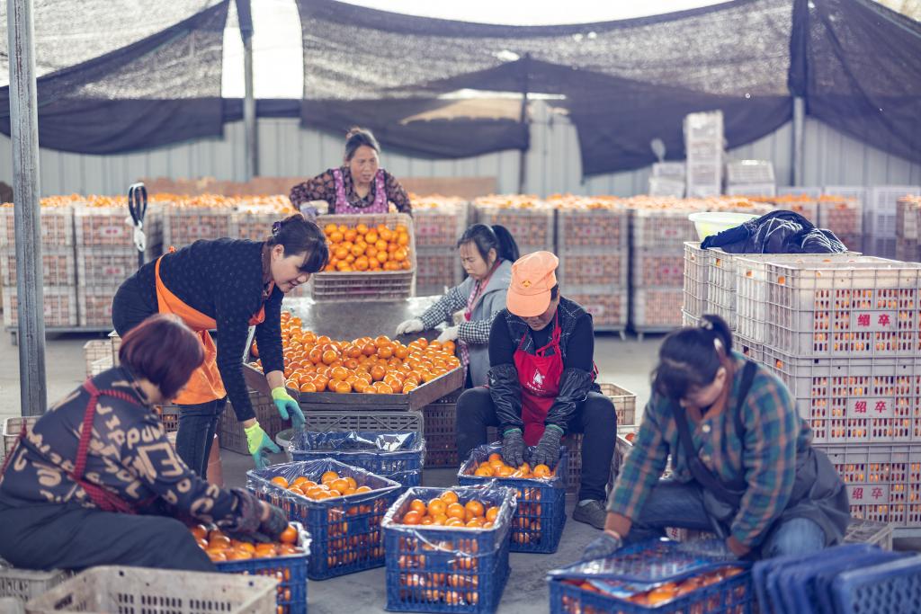 重慶市長壽區龍河鎮保合村村民將挑選的柑橘裝箱(3月24日攝)。這一批柑橘經過分選、清洗、裝箱等流程后,將搭乘西部陸海新通道班列進入東南亞市場。新華社記者 黃偉 攝