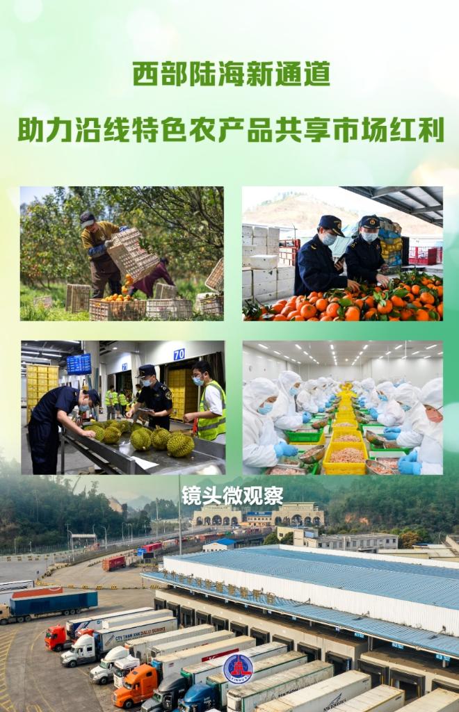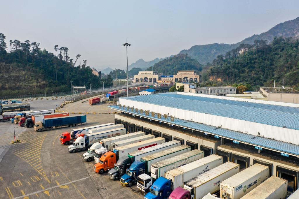 在廣西憑祥友誼關口岸,裝載著來自中國和東盟國家特色農產品的貨車通過口岸(3月21日攝)。新華社記者 曹祎銘 攝
