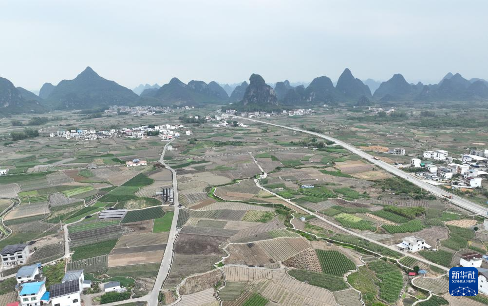 這是廣西柳州市柳江區三都鎮覺山村的蔬菜種植基地(無人機照片,4月26日攝)。
