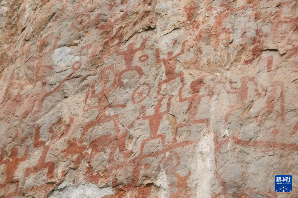 這是在廣西寧明縣城中鎮耀達村拍攝的花山巖畫。新華社記者 張楓 攝