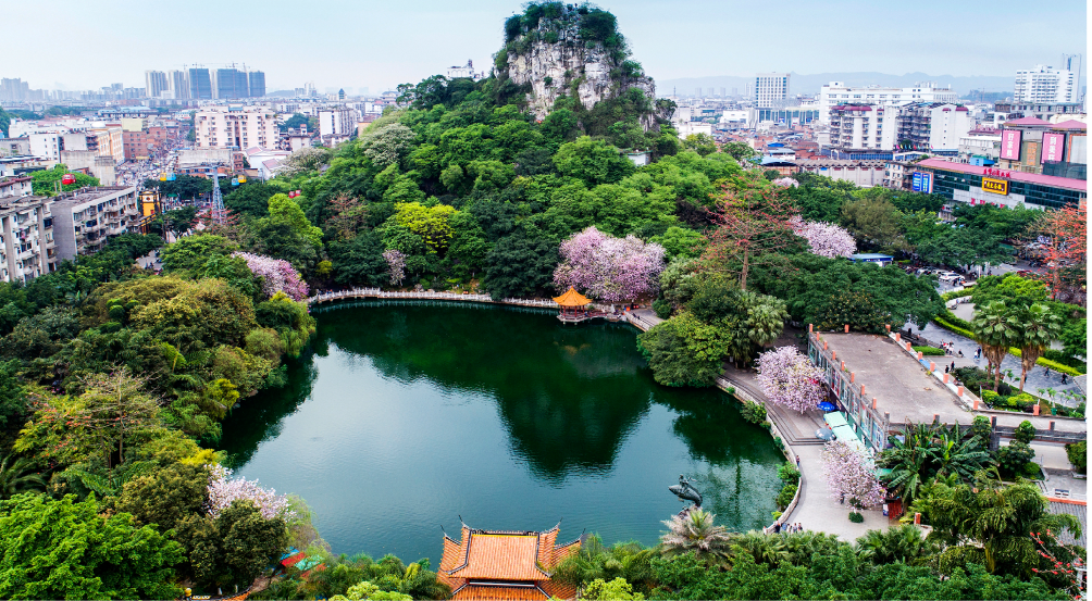 廣西柳州魚峰公園內的小龍潭與魚峰山。新華社發 包華武 攝