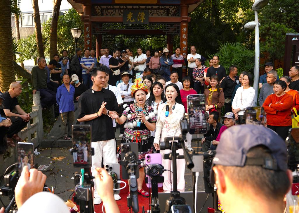 5月,柳州市的魚峰公園內,處處擺起歌臺,人潮涌動,許多年輕人用手機一邊直播,一邊參與山歌對唱。來自廣東的游客李女士特意到魚峰公園打卡“對歌”,“直播間的粉絲們都挺喜歡這種古老的‘freestyle’,這次來柳州除了吃螺螄粉,打卡山歌也是主要目的之一?!?/p>