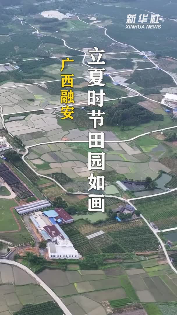 立夏時節,一場降雨過后,地處桂北的廣西融安縣田野里雨水豐盈,初夏的禾苗散發著嫩嫩的青綠,壯族村寨與阡陌縱橫的田園相互映襯,構成一幅初夏天然畫卷。