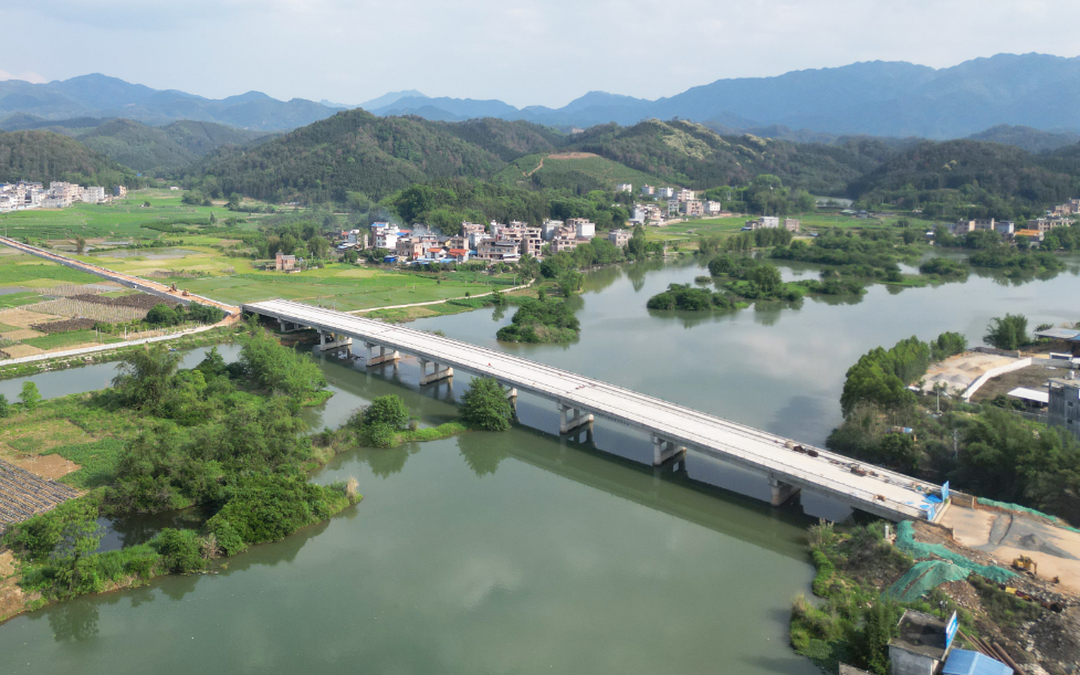 近日,在賀州市八步區大寧鎮大寧新橋項目現場,大橋橋面已經鋪好,正在修建引道的路基,預計年內可以通車。