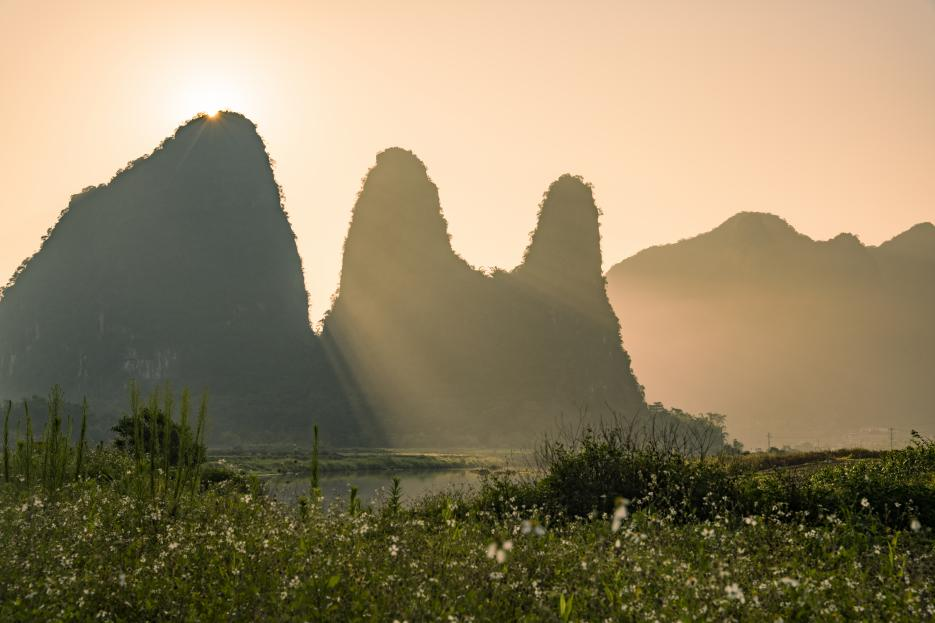 百里水墨畫廊景區位于賀州市鐘山縣境內,屬喀斯特峰林地貌景觀,這里的山水與田園交相輝映,恬靜而治愈,宛如一幅令人沉醉的水墨畫卷。 (蒙繼超 何雪)