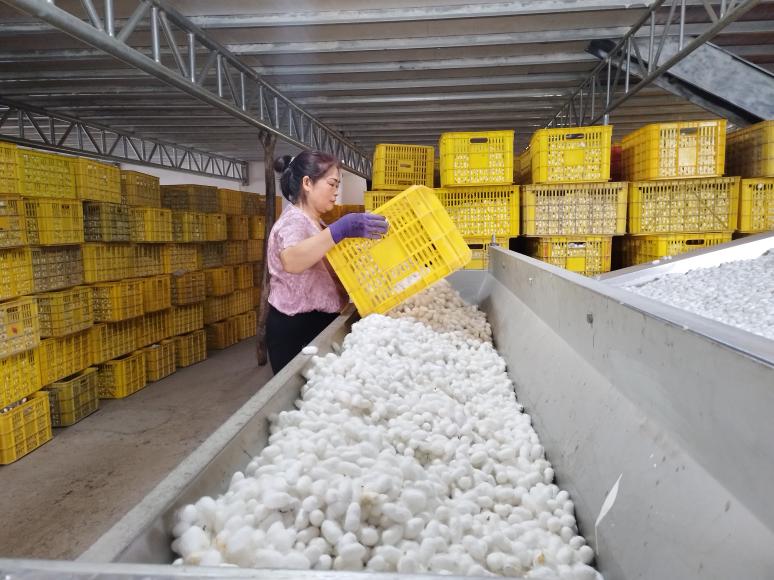 從“人背桑葉”到“喂蠶車運葉”,從“土爐烘繭”到“數據調控”,宜州的蠶桑產業正邁向智能化、規?;?。據統計,今年第二季度,宜州蠶繭產量達4.4萬噸,產值26億元,帶動11.9萬戶蠶農增收。(潘淑蘭 韋毅)