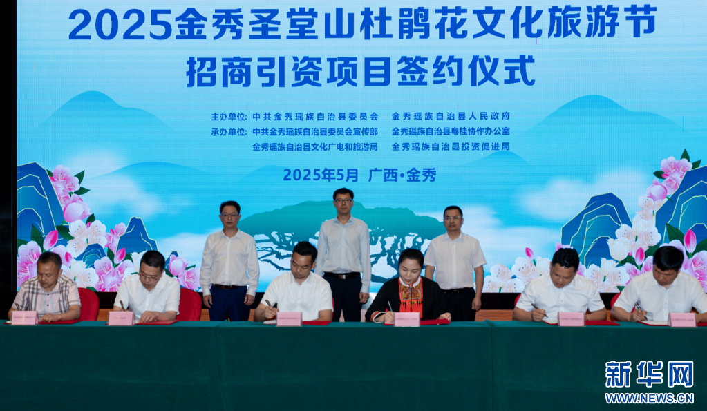 5月16日,2025金秀圣堂山杜鵑花文化旅游節招商推介會在盤王谷酒店舉行?!敖鹦憧h大瑤山盤王界景區微度假產品開發項目”“金秀瑤族自治縣儲能高峰電站項目”“廣西金秀AI智能瑤藥膳奶茶總部經濟項目”等6個招商引資項目在現場集中簽約,涉及文化旅游、瑤醫藥大健康、生態特色農業等方面,總投資額11.47億元。