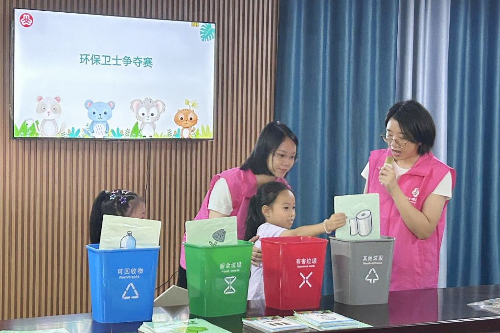 在家風家教小講堂內,巾幗志愿者通過繪本故事、視頻等形式講述“家的溫暖”,傳遞尊敬長輩、互助友愛的家庭價值觀,教授親子溝通技巧。在垃圾分類親子活動中,巾幗志愿者用色彩鮮艷的展板搭配卡通形象和簡單易懂的文字,講解垃圾分類知識,親子共同參與垃圾分類投放,強化環保意識。在親子手工DIY環節,家長與孩子利用安全無毒材料,攜手制作端午節竹編龍舟掛飾,繪制端午節卡通粽子小扇子,在創意手工中增進親子感情。