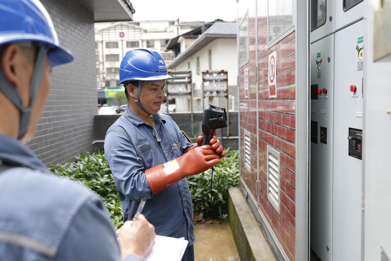 保電人員正在恭城油茶小鎮對用電設備進行檢查