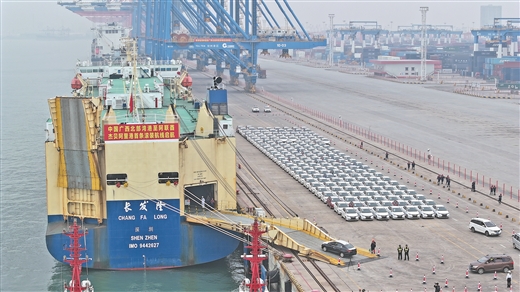 4月7日,“北部灣港—杰貝阿里港”滾裝航線成功首航,這是西部陸海新通道首次開行“鐵路籠車+滾裝運輸”海鐵聯運,開辟了西部地區汽車整車出海的新路徑。