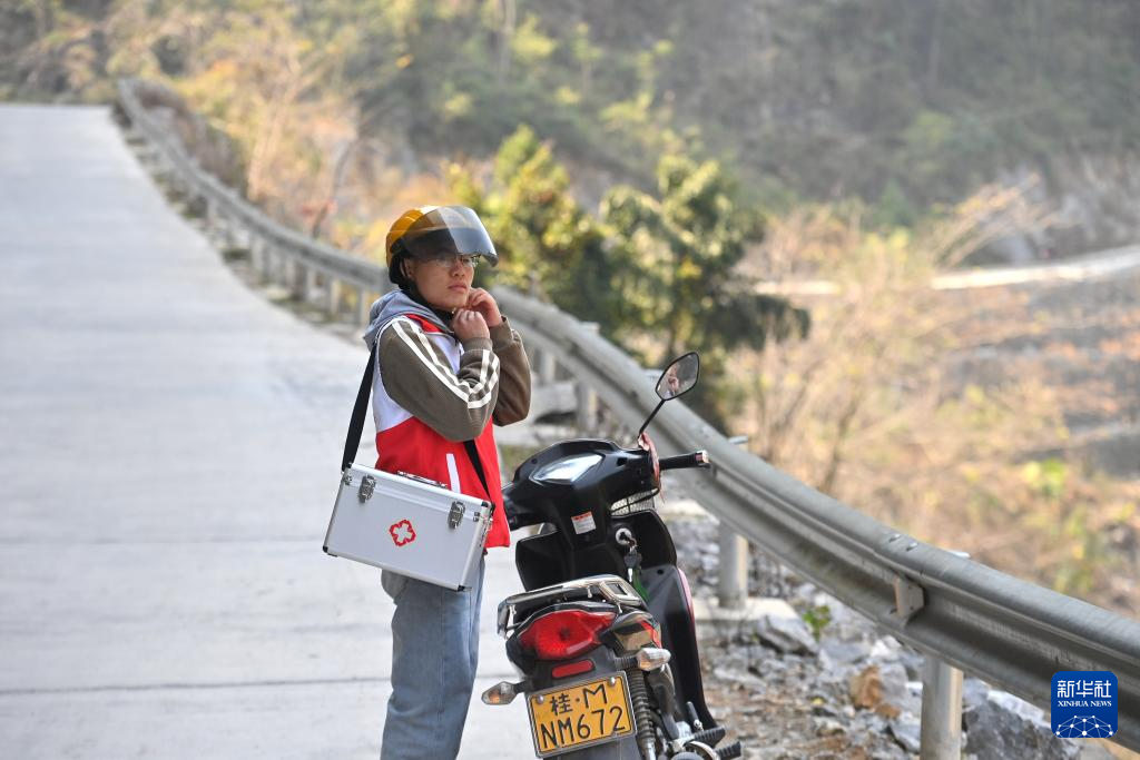 在廣西大化瑤族自治縣板升鄉弄雷村,村醫蒙富松準備進村入戶給村民看?。?024年3月6日攝)。