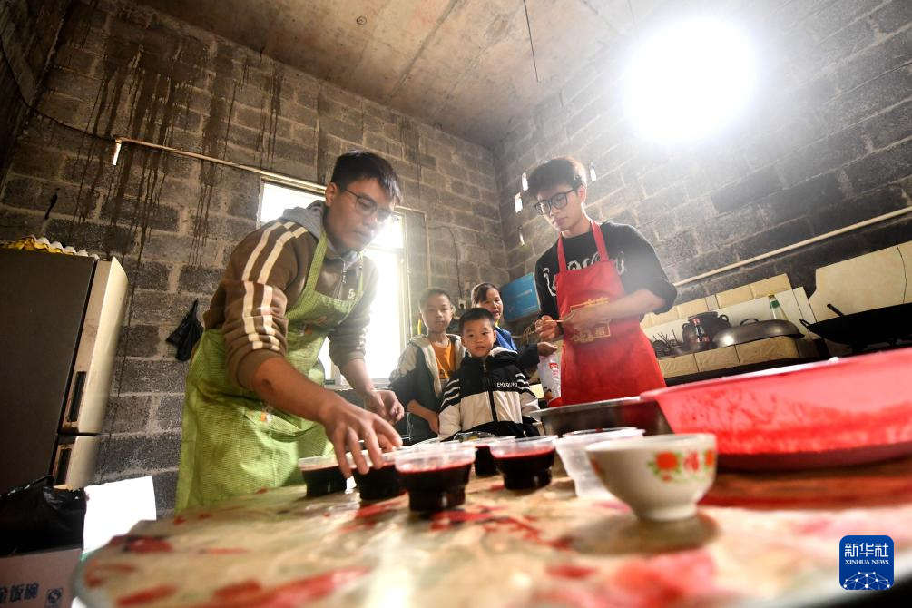 在廣西大化瑤族自治縣板升鄉弄雷村,村醫蒙富松(左一)在家準備晚飯(2025年1月20日攝)。