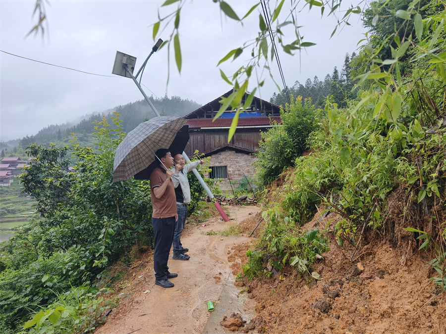大年鄉組織鄉干部和村“兩委”干部到各地災隱患點開展排查,查看路基穩定性、排水系統暢通情況,對因強降雨可能引發的山體滑坡、路基塌陷等風險,在危險路段設置警示標識,提醒過往行人注意安全。同時,安排各隱患點監測員加強巡查排查,確保道路交通安全暢通。