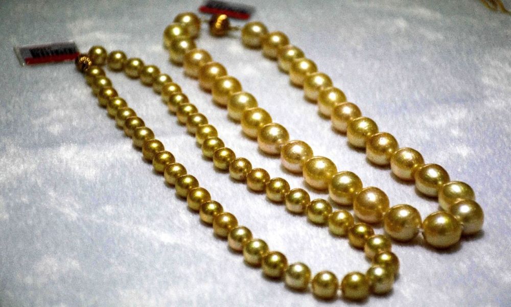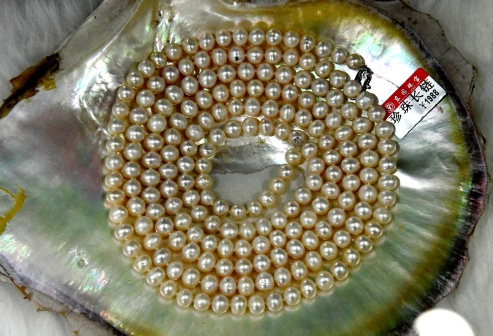 這是在北海市合浦縣南珠市場上銷售的南珠項鏈。新華社記者張愛林攝