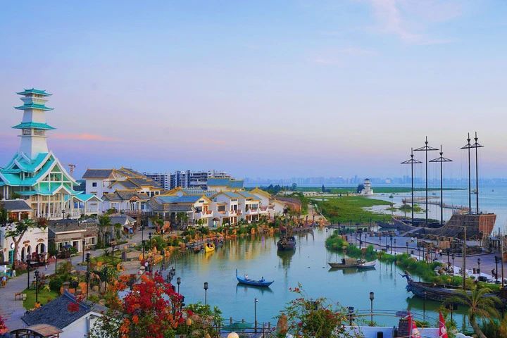 景區內,融合漢代建筑風格與異域元素的古堡建筑錯落有致。古堡內復刻漢代市井街巷,設有商鋪、碼頭、驛站等場景。作為全景交互式演藝《千年始發港》的主舞臺,古堡區域每晚上演商隊出港、異域歌舞、漢風婚禮等劇情。當身穿古代服飾的商家、漁民、水手,以及裝扮奇異的各國商人從你身旁走過,仿佛打開時光之門。