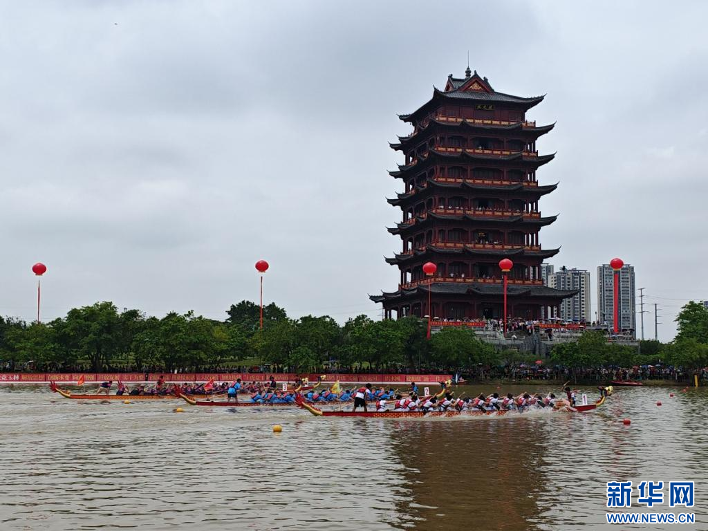 新華網南寧5月31日電(華峻卿)30日,廣西玉林園博園內人潮涌動,“龍騰端午·虎競玉林”2025年玉林市龍舟邀請賽在這里舉行。來自玉林各地的16支龍舟隊鼓聲震天、奮勇爭先,在300米直道競速賽中展開激烈角逐。