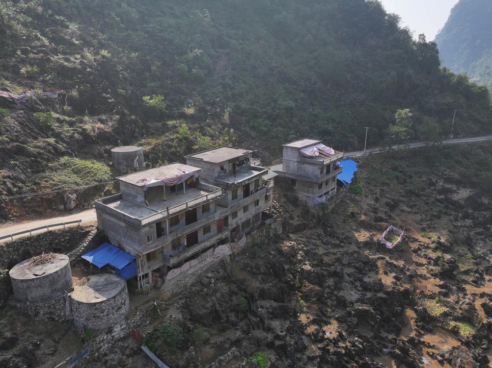 在廣西大化瑤族自治縣板升鄉弄雷村哈寶屯,蒙秋艷的家(左一)已經搬遷至公路邊(2025年1月20日攝)。
