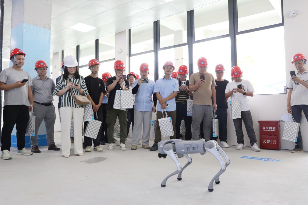 在智慧建造展示區域,智能巡檢機器狗引得觀摩人員矚目。智能巡檢機器狗通過邊緣分析模塊、攝像頭和5G網絡識別危險源,同時搭載3D激光掃描模塊和智能感知系統,可獲取環境信息,在存在潛在危險的環境中作業,保障施工人員安全。