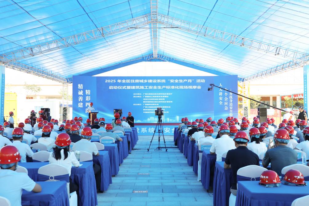 新華網廣西頻道6月5日電(李春振 楊俊麟 張廣軍)6月4日,2025年廣西住房城鄉建設系統“安全生產月”活動啟動儀式暨建筑施工安全生產標準化現場觀摩會在中建四局都安人民醫院(二期)項目現場舉辦。