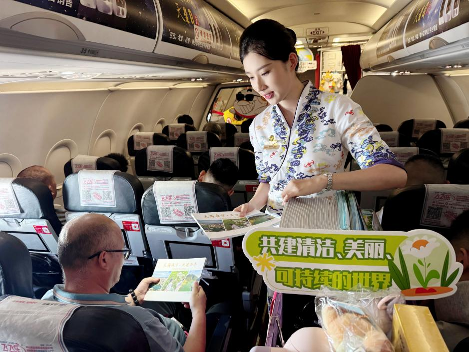 GX8959航班乘務組向旅客發放生態環境宣傳冊