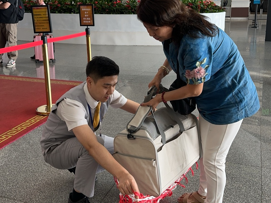 為保障攜寵旅客順暢出行,廣西北部灣航空地面保障團隊在接到旅客服務需求時,立即啟動專項服務流程??头鲃勇撓德每?,詳細說明材料準備要求及乘機注意事項;設立寵物乘機專屬通道,快速完成寵物箱安全檢查、疫苗證明核驗及健康文件審核;特別預留聯排座位,確保寵物活動空間。從預約到登機,廣西北部灣航空用專業與溫度,為攜寵旅客提供全程無憂的飛行體驗。