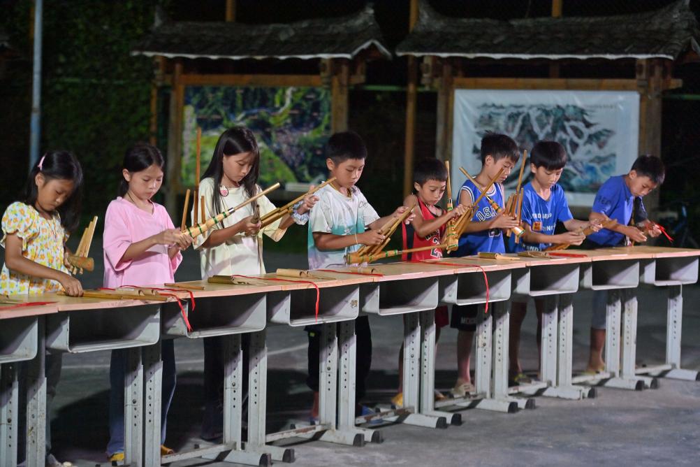 烏英苗寨的孩子們在吹蘆笙(2024年10月5日攝)。