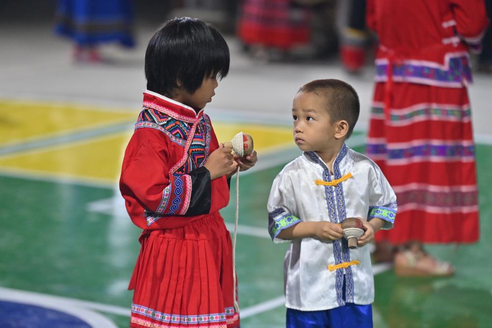烏英苗寨的孩子們參加蘆笙組裝比賽(2024年8月8日攝)。