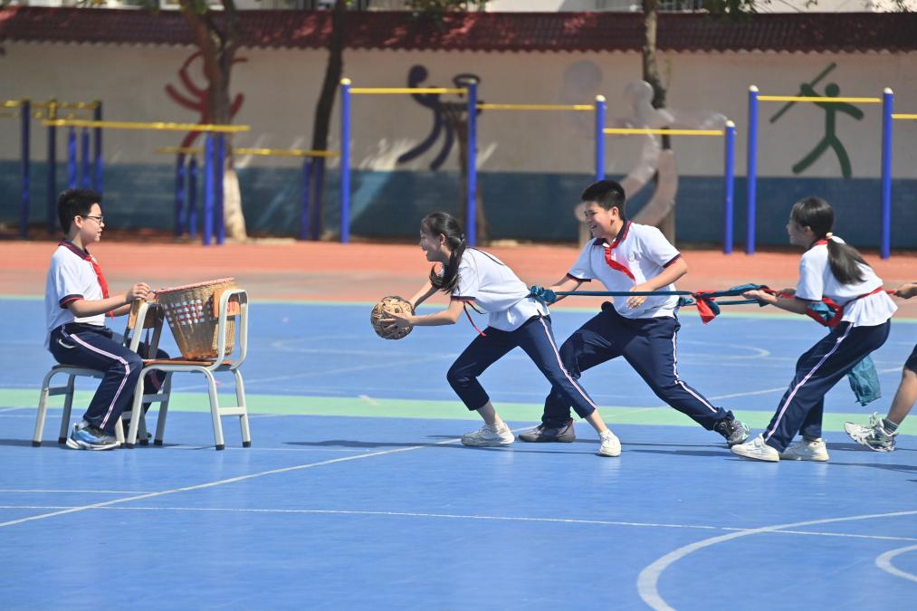 梧州市新興小學學生在大課間打竹球(2025年5月13日攝)。