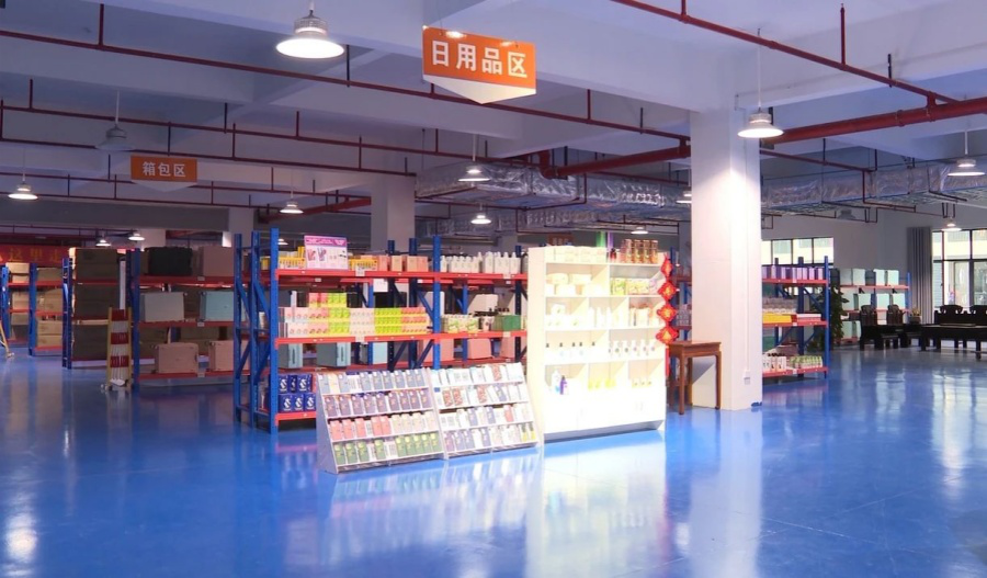 憑祥跨境電商直播基地琳瑯滿目的商品。