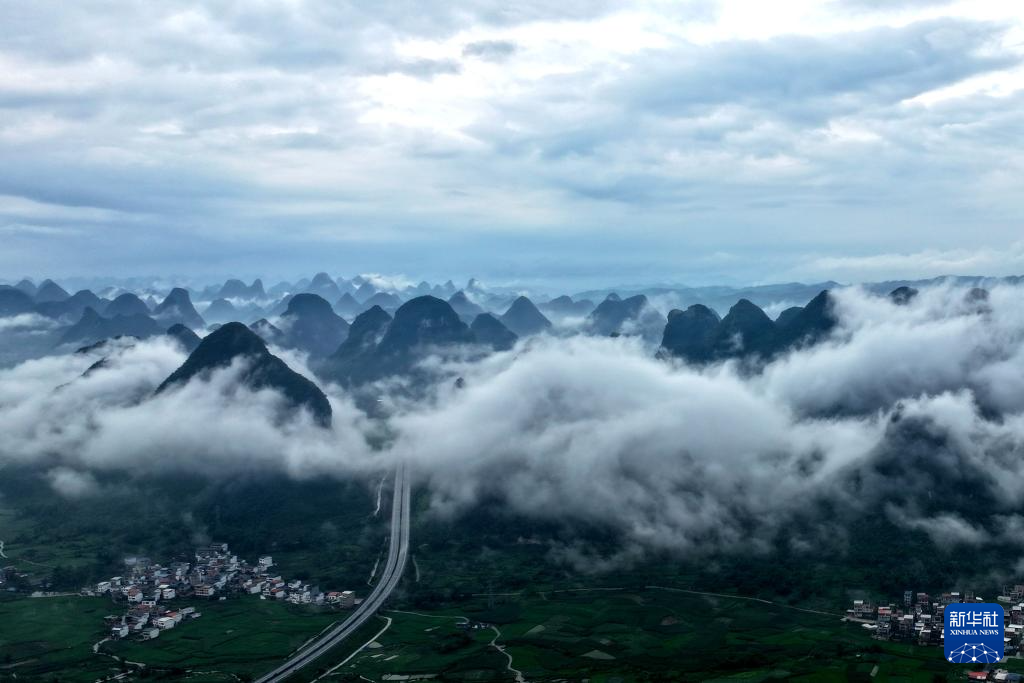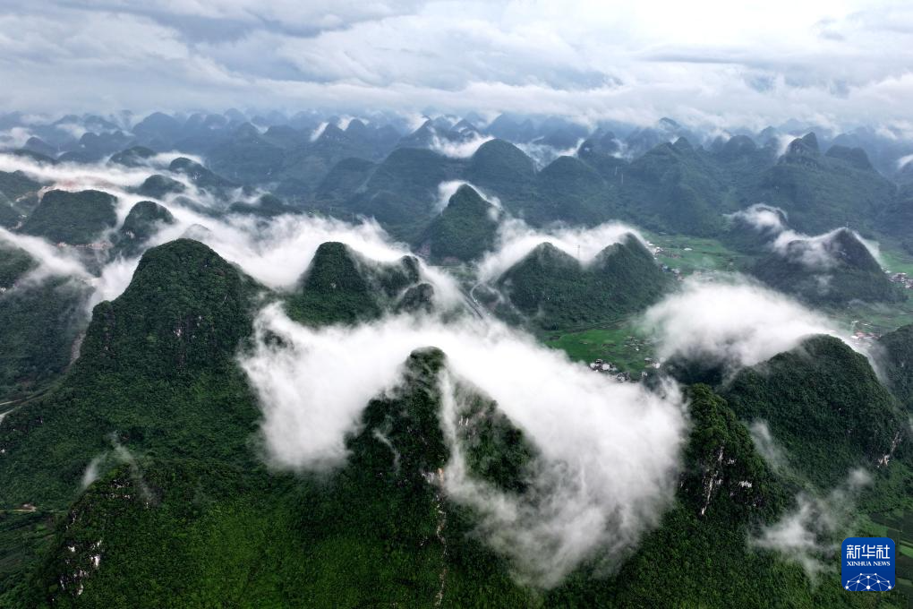 2025年6月22日,在廣西壯族自治區河池市羅城仫佬族自治縣拍攝的喀斯特山區霧景。(無人機照片)CICPHOTO/韋如代 攝