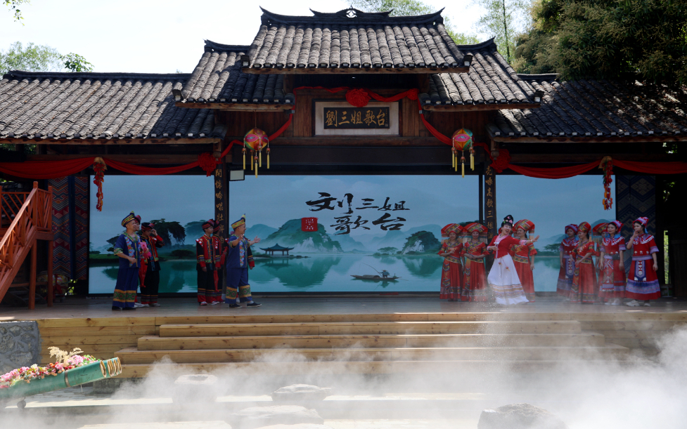 圖為三姐故里景區的文藝展演