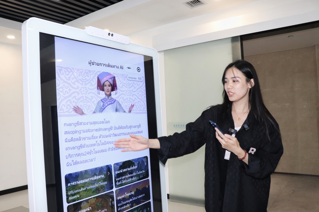 廣西旅發新媒體運營有限公司新媒體事業群總監范舒婷在介紹泰語版“三姐伴游”。李宇安 攝
