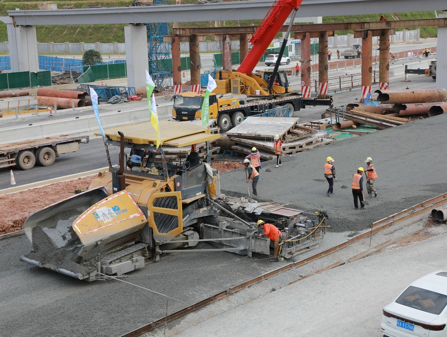“截至目前,水穩路面已經完成了90%,預計8月底蒼容二標將完成剩余10%的路面攤鋪施工,實現水穩層全面貫通?!?蒼容高速二標項目副經理趙智安介紹。