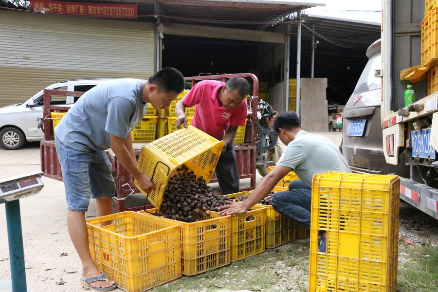 栗農正在對板栗進行過稱打包裝箱發車。莫斌 攝