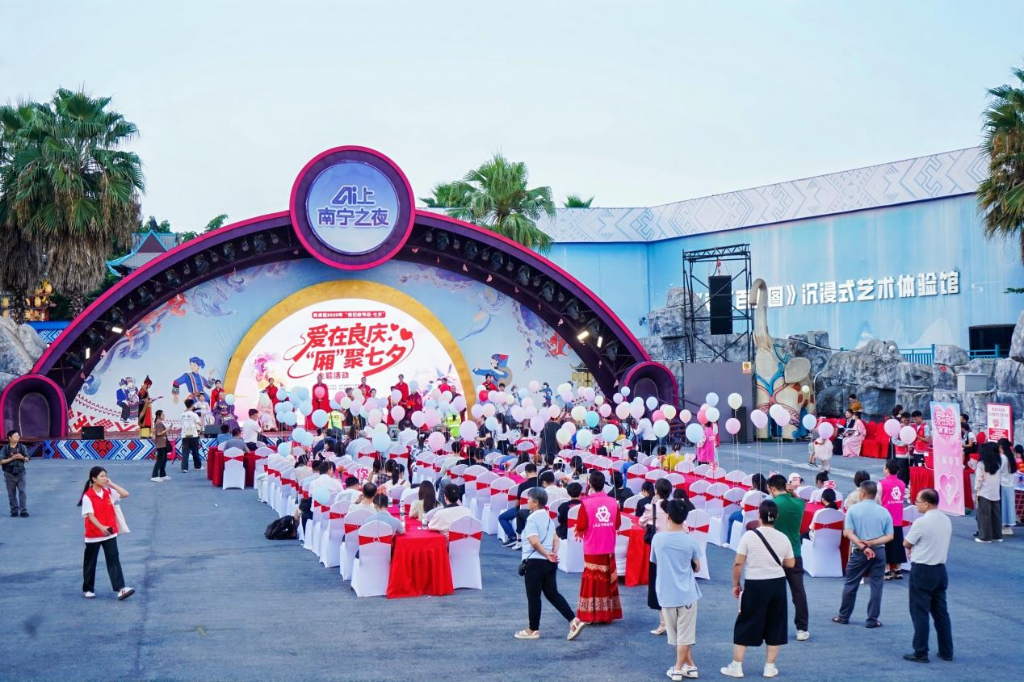 8月24日晚,2025年“我們的節日·七夕”——“愛在良慶?‘廂’聚七夕”主題活動在南寧之夜篝火廣場舉行。