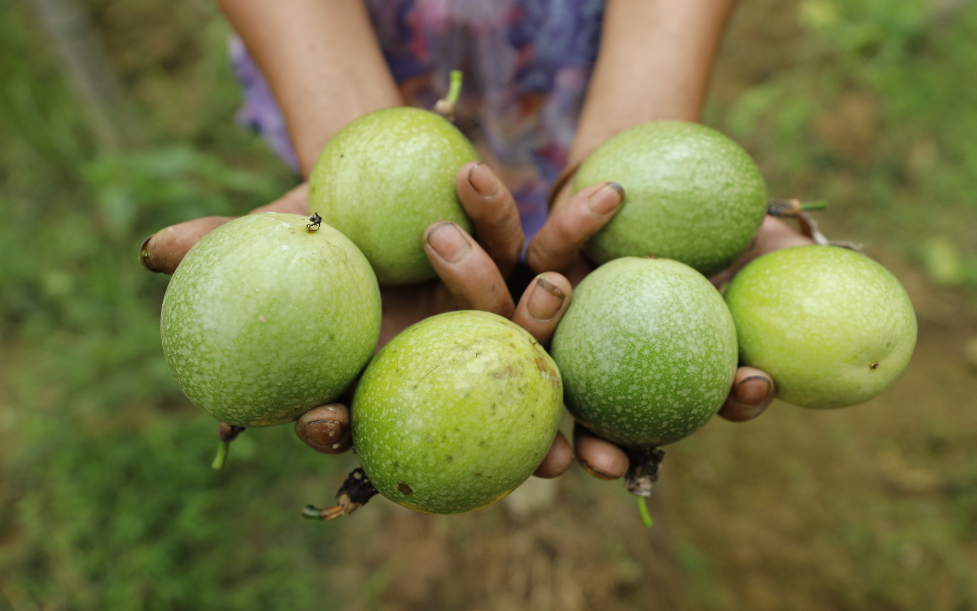 農戶正在展示剛摘下的百香果。
