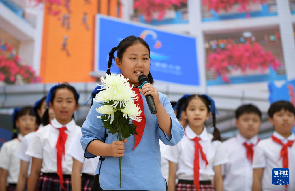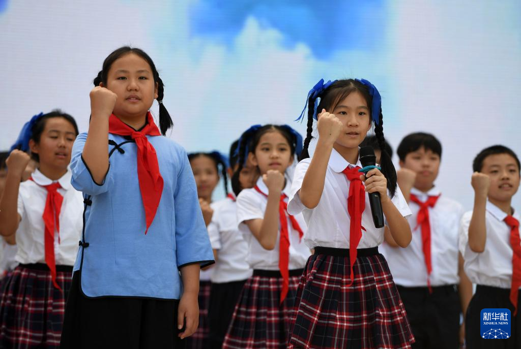 這是廣西南寧市濱湖路小學《薪火照山河 童心向未來——一堂穿越八十年的思政課》實景思政課現場(9月1日攝)。新華社記者 陸波岸 攝